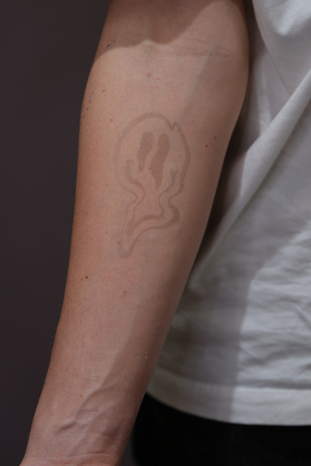 4️⃣ Zdejmij papier: Po kilku sekundach delikatnie usuń papier. Początkowo tatuaż będzie widoczny w niewielkim stopniu. W ciągu 36 następnych godzin powinien się odpowiednio wybarwić.